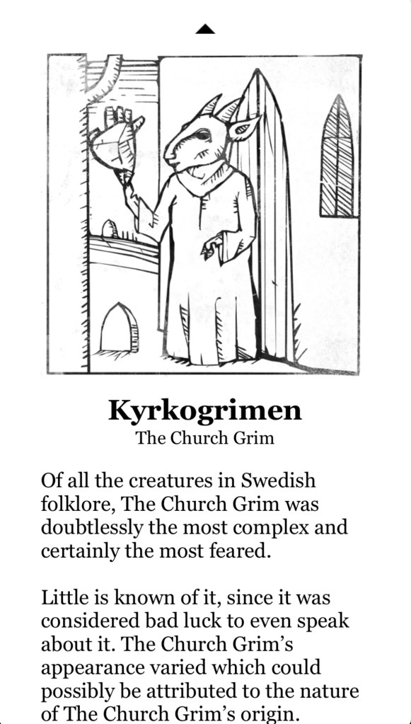 This version of the game is split in two unequal parts: the game itself, and a chalk-dry secondary app called the Year Walk Companion, featuring short encyclopaedia articles on the folkloric characters that appear in the story. These two apps are so dramatically asymmetrical, one so lavishly designed and the other so plain, that it’s easy to miss the fact that their user interfaces are exactly the same. In Year Walk, you scroll the game’s first-person perspective from left to right, exploring horizontal corridors that give the option of shifting to a new corridor by swiping vertically at specific moments. The Companion offers a menu of articles that you scroll between horizontally and select by swiping upwards. This mechanical similarity is the first suggestion that the Companion may be more than it seems: an integral part of the game, and not just a dutiful infotainment product like the ones you might download to Enhance Your Experience of a public museum or art gallery.