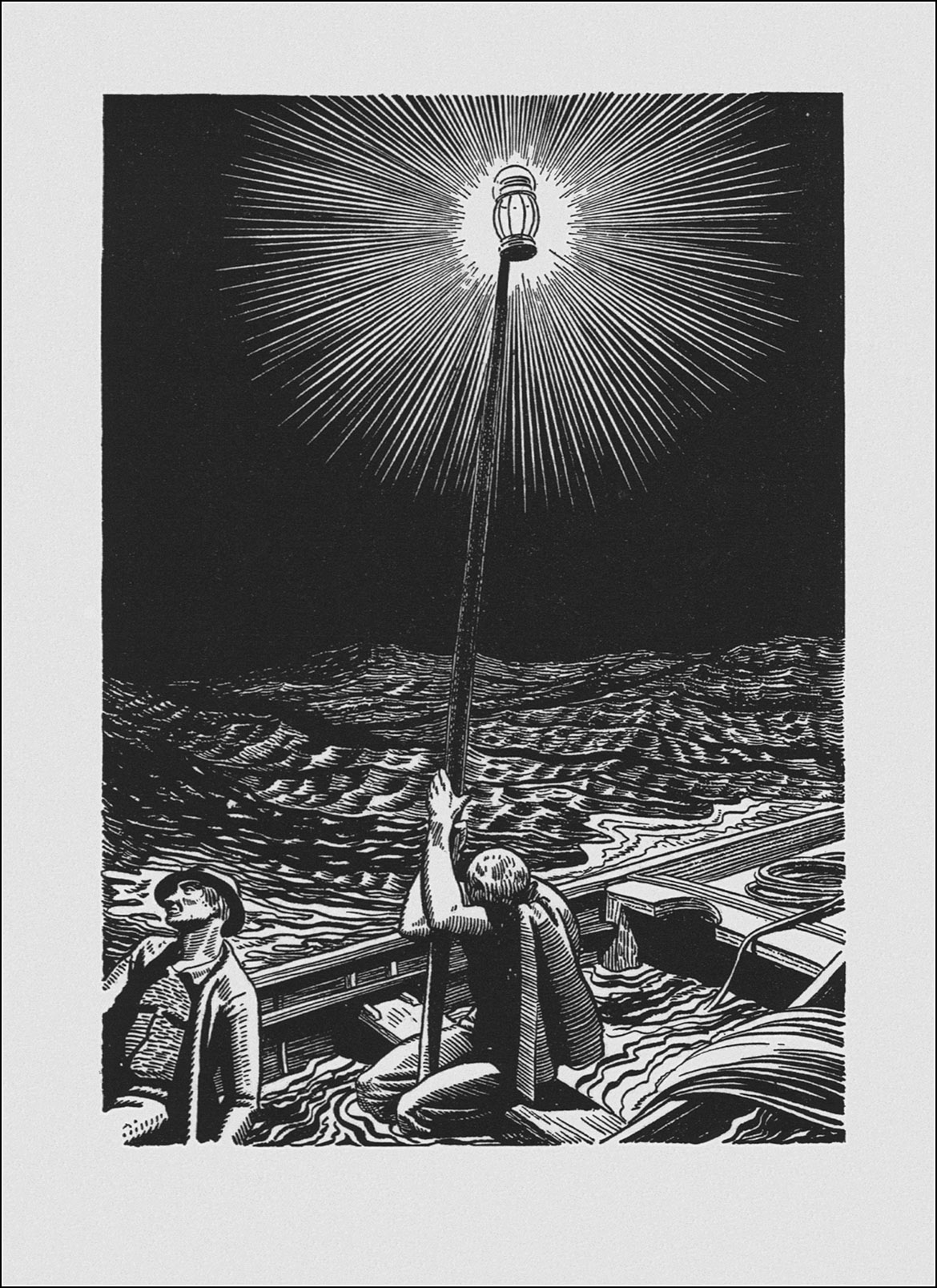 This brief scene is an exercise in suspense. Two sailors hear something odd at night–a cough, perhaps, from below decks. Previously, we heard from the prophet Elijah that Ahab had secreted something, or someone, aboard the ship under cover of darkness. Now it comes to mind again.