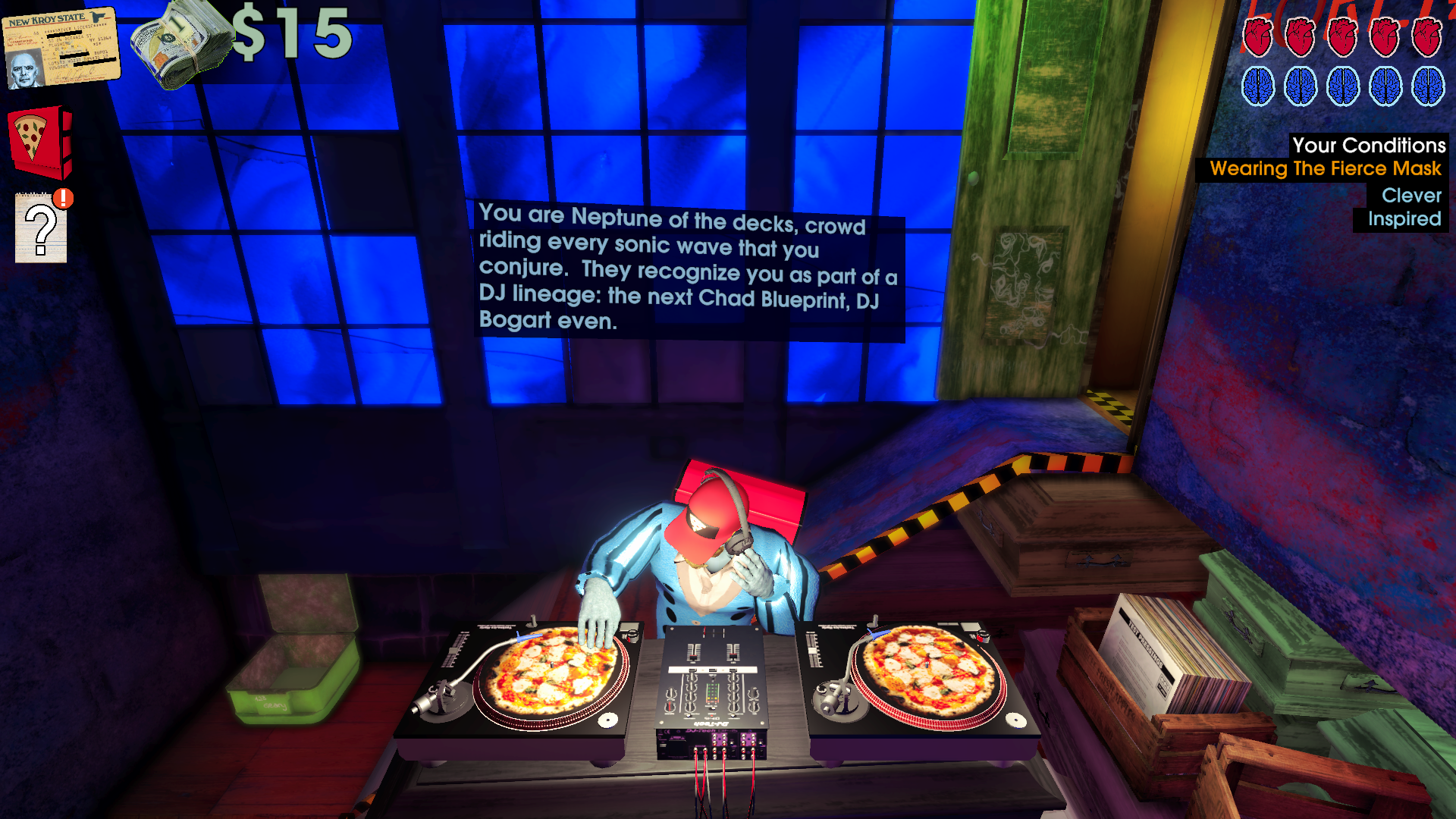 In 2013, we learned just how useful these miraculous new devices were for spying. Simogo responded with DEVICE 6, a game that weaponizes the player’s anxiety about what black magic their phone is capable of. Optimism turned to wariness. The following year, Simogo released The Sailor’s Dream (still their finest work) to weak sales and critical indifference. Instead of publicly succumbing to spite, or forswearing the audience like Renzo Nero, they released The Sensational December Machine. It’s a vanishingly short game that deals with some of the same themes as Lorelei and the Laser Eyes: what it means to make something, and whether it matters what other people think. It concludes that no, it doesn’t necessarily matter. But it does so in the most graceful possible way. Their next major release, Sayonara Wild Hearts, was the definition of a crowd pleaser.