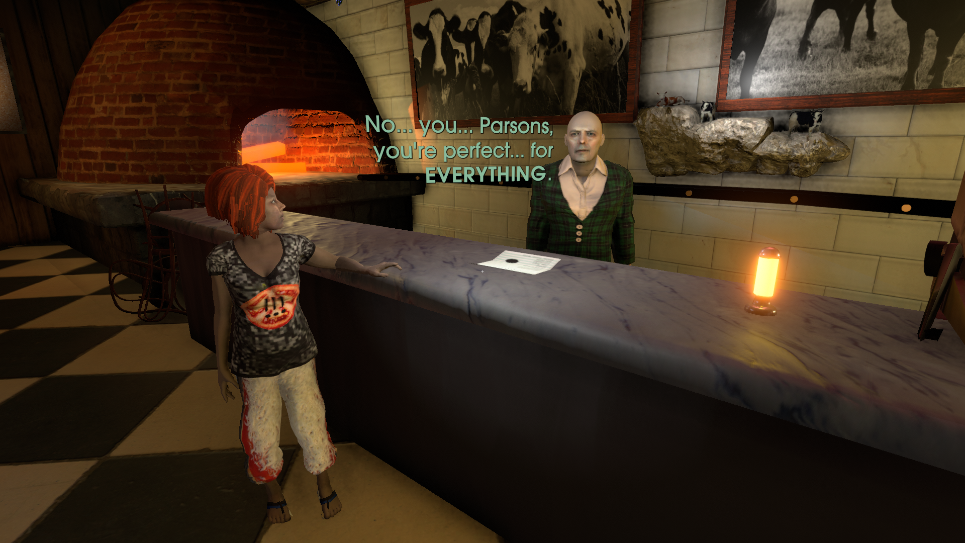 But by the end, it’s obvious that this elderly woman represents the most empirically “real” thing in this whole godforsaken hotel. It is not actually the middle of the 20th century; it is 2014. We are not actually in the Hotel Letztes Jahr; we are in the Schöner Tag care home, coping with dementia. What we have been experiencing in this game is a difficult journey through Lorelei’s heavily barricaded memory palace. The people we’ve been talking to are two-thirds fictional: Renate Schwarzwald and Lorenzo the Great are characters in an unmade film by Renzo Nero. Renzo himself was an old colleague of Lorelei’s. He invited her to collaborate with him in 1963, but fell into a deep mental illness before the project was complete.