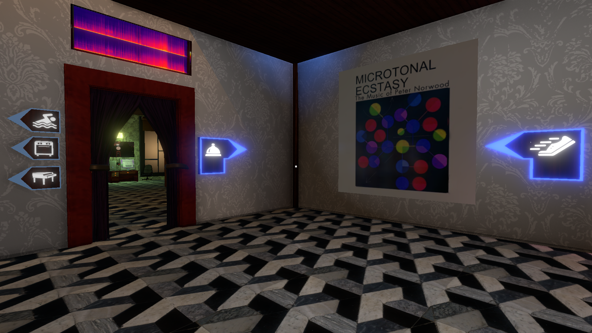 Schwarzwald isn’t the only character here who appears in multiple instances. When we find our way into our hotel room, we discover that we’re already there: